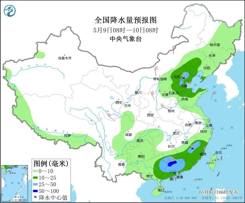 今起三天(5月7日至9日),南方地区将开启新一轮较强降雨过程,西南地区东部、江南西北部和中部等地部分地区有大到暴雨,并伴有强对流天气;与此同时,冷空气将给北方多地带来降水、降温和大风沙尘天气。